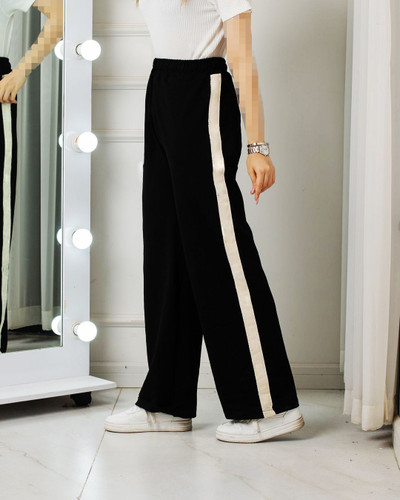 شلوار بگ دورس پنبه لاکرادار بغل نوار سه نخ مشکی زنانه (نوار دار) XXL
